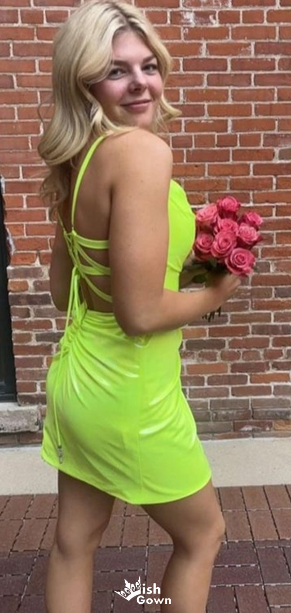 Casual Spaghetti Strap Sheath Short Mini Homecoming Dress,EPT465
