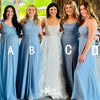 Unique Blue A-Line Cheap Maxi Long Wedding Guest Bridesmaid Dresses,WGM342
