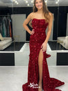 Charming Red Mermaid Strapless Side Slit Popular Long Evening Dresses, Formal Dresses, Birthday Party, WGP555