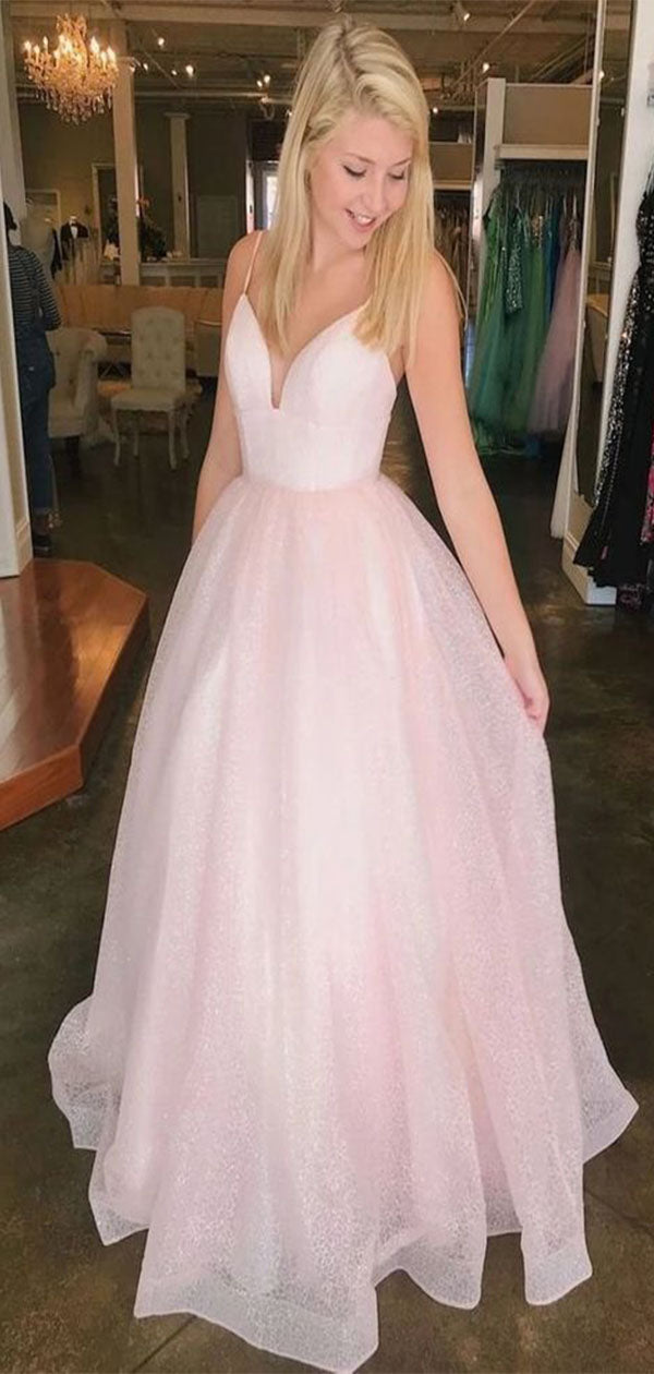 Elegant A-Line V Neck Spaghetti Straps Long Formal Prom Dresses,Evening Gowns,WGP370