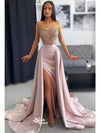 Sexy Pink Mermaid Strapless Side Slit Maxi Long Evening Prom Dresses, WGP257