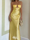Stylish Yellow Spaghetti Straps Satin Sheath Long Prom Dresses ,WGP1061