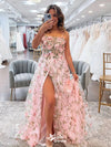Beautiful Pink A-Line Spaghetti Strap Side Slit Popular Long Evening Dresses, Formal Dresses, Birthday Party, WGP585