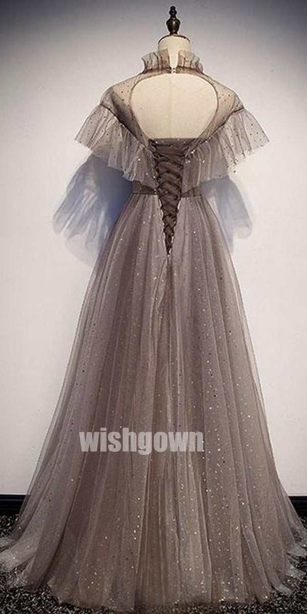 Elegant A-line Sequins Tulle Long Prom Dresses PG1178
