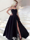 Elegant Black Spaghetti Strap A-Line Side Slit Long Sleeveless Popular Long Evening Dresses, Formal Dresses, WGP704