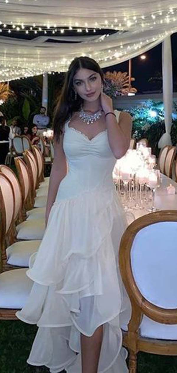 Elegant White A-Line Ruffle Popular Long Evening Dresses, Formal Dresses, Birthday Party, WGP585