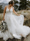 Elegant V-neck Applique Tulle Long Wedding Dress WDH058