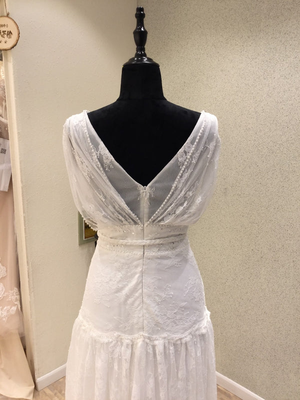 Unique Design V Neck Lace Beach Long Brides Wedding Dresses, WG1216