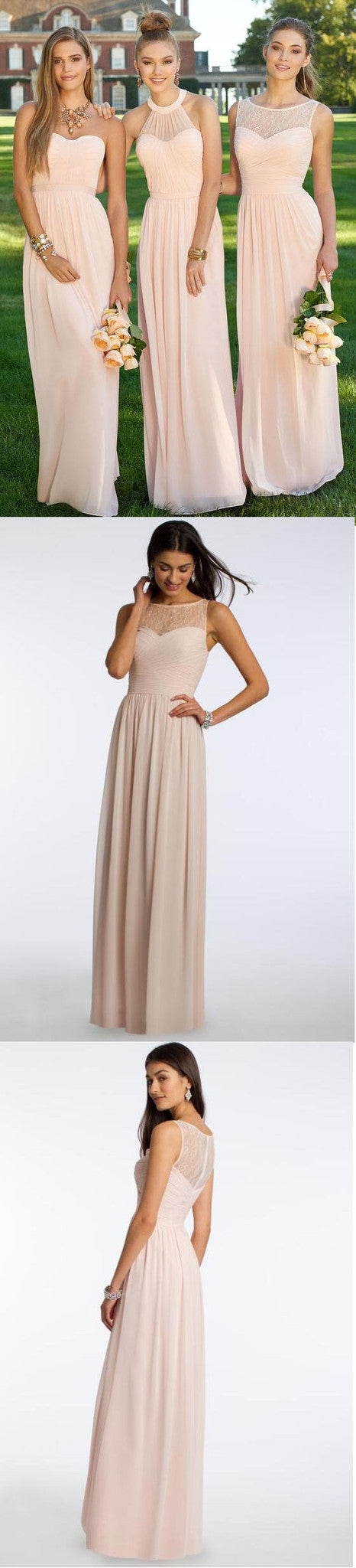 Mismatched Different Styles Chiffon Blush Pink Modern Formal Floor-Length Cheap Bridesmaid Dresses, WG103