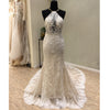 Affordable Unique Haler Mermaid Open Back Long Cheap Wedding Dress, WG686