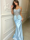 Elegant Blue Spaghetti Strap Mermaid Long Prom Dress Ideas, Evening Party Dresses, WGP2026