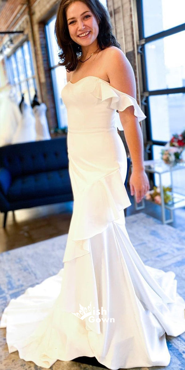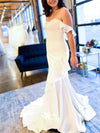 Unique White Off-shoulder Mermaid Long Wedding Dress, WDH075