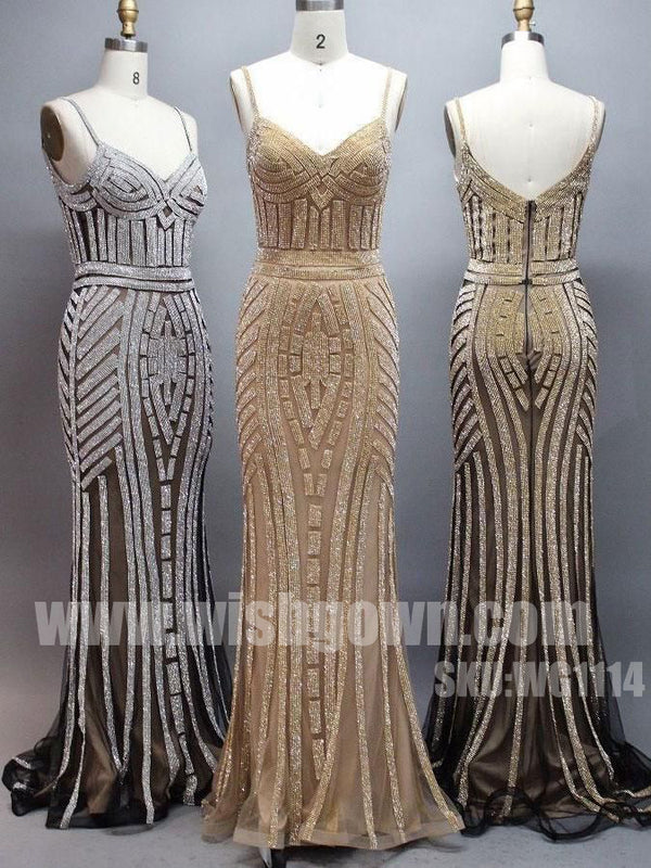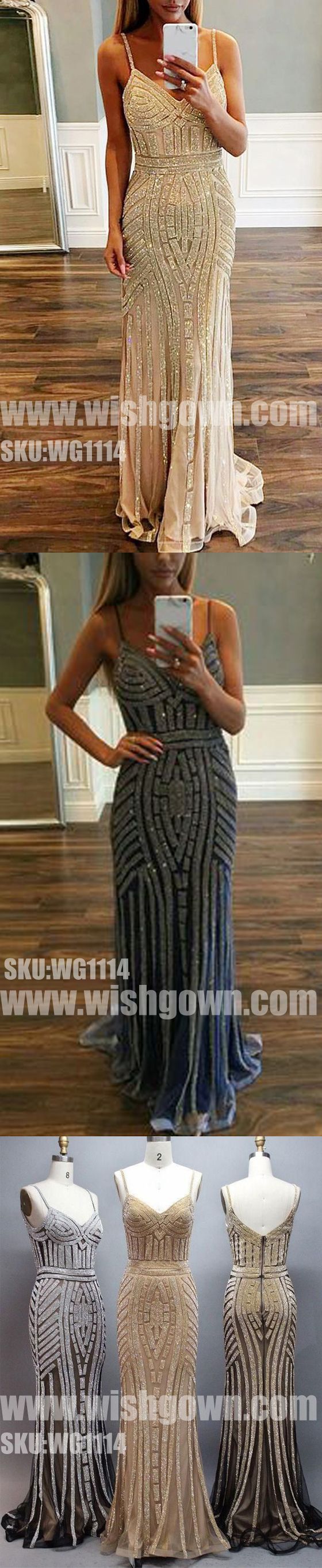Most Popular Sparkle Charming Spaghetti Strap Evening Long Prom Dresses, WG1114