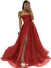 Sexy Red A-Line Sweetheart Spaghetti Straps Side Slit Beading Long Formal Prom Gowns,Evening Dresses,WGP360