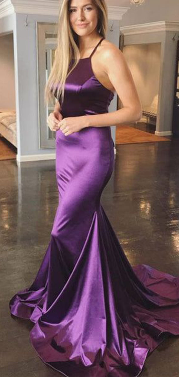 Sexy Purple Halter Strap Mermaid Party Prom Dresses,Evening Dress Online, WGP817