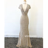 Short Sleeves V-neck Beaded Long Prom Dresses PG1143
