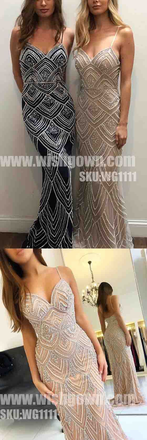 Spaghetti Strap Mermaid Beaded Gorgeous Long Evening Prom Dresses, WG1111