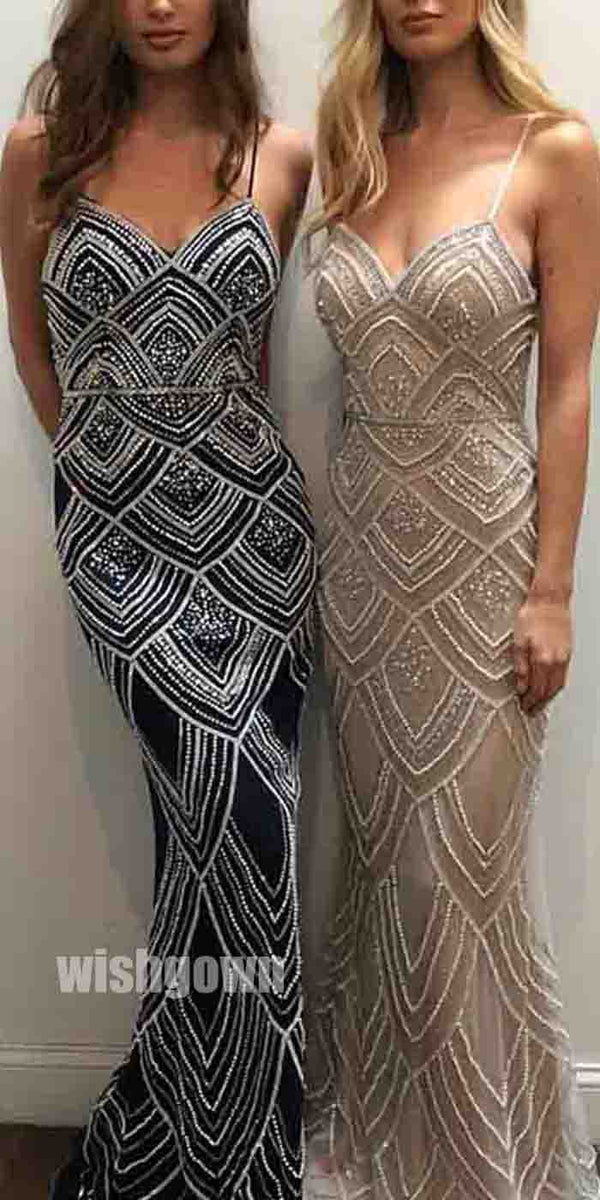 Spaghetti Strap Mermaid Beaded Gorgeous Long Evening Prom Dresses, WG1