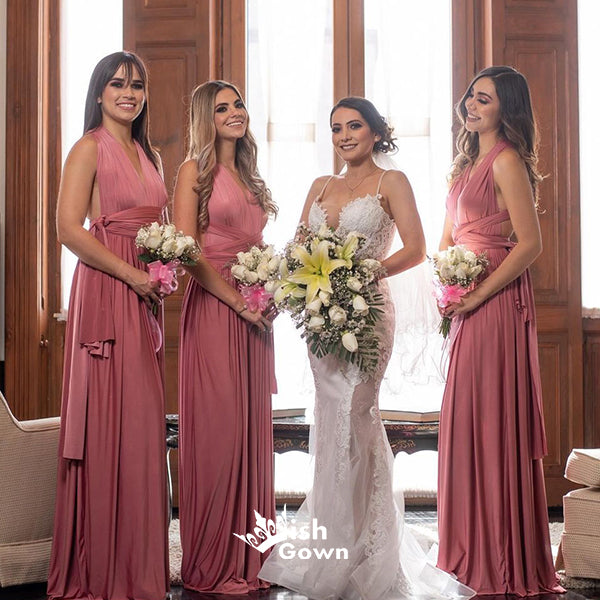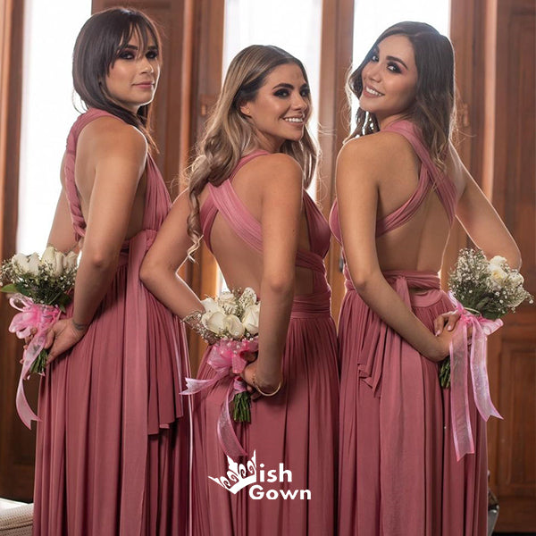 Charming Mismatched Pleating Floor Length Lace Up Cheap Wedding Guest Dresses, WGM001