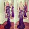 Women Sexy Mermaid Backless Black Lace Cheap Evening Long Prom Dresses, WG220