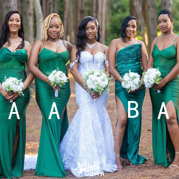 Elegant Green Mermaid Side Slit Sweetheart Sleeveless Wedding Guest Bridesmaid Dresses,WGM355