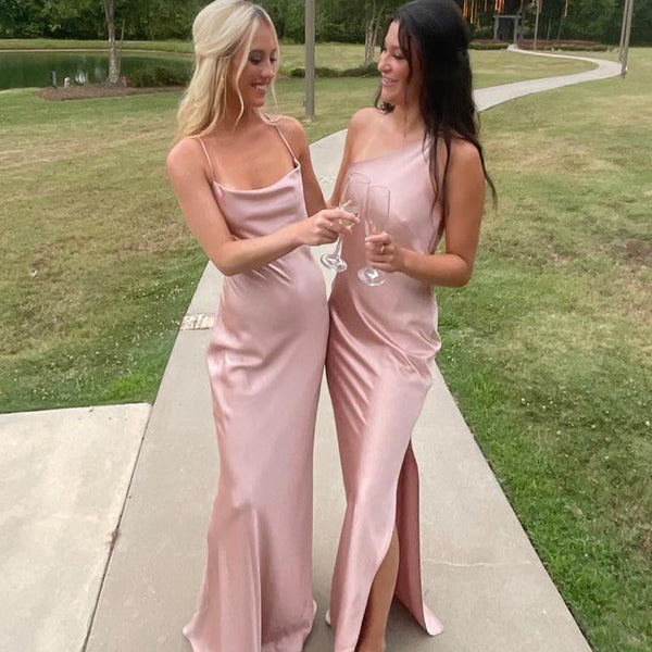 Simple Pink Spaghetti Strap Square Mermaid Side Slit Sleeveless Wedding Guest Bridesmaid Dresses,WGM396