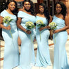 Elegant Blue Mermaid One Shoulder Sleeveless Popular Cheap Maxi Long Wedding Guest Bridesmaid Dresses,WGM297