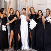 Elegant Black Spaghetti Strap Square Mermaid Side Slit Sleeveless Wedding Guest Bridesmaid Dresses,WGM395