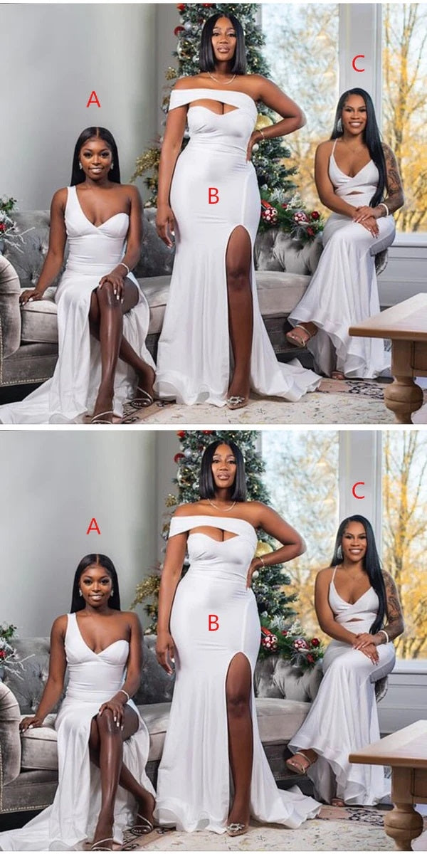 Mismatched White Mermaid Side Slit Cheap Long Bridesmaid Dresses Onlin
