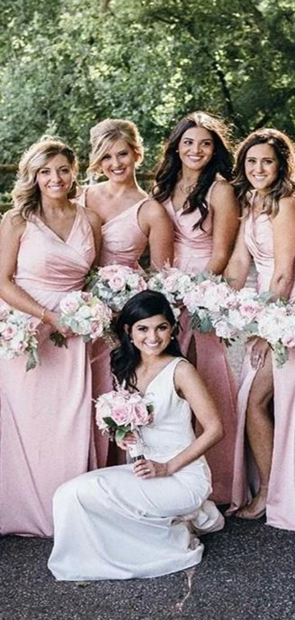 Sexy Mermaid Spaghetti Straps Side Slit V Neck Popular Cheap Maxi Long Wedding Guest Bridesmaid Dresses,WGM218