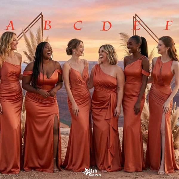 Modern Multi-Style Burnt Orange Satin Maid of Honor Dress With Side Slit,WGM473