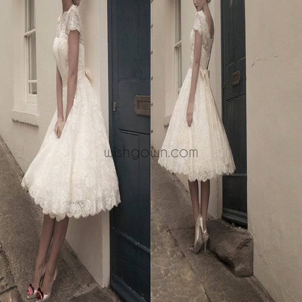 New Arrival lace with short sleeve knee-length elegant casual homecoming prom gown dresses.