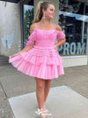 Elegant Pink Spaghetti Straps Sleeveless Ruffle Cheap Short Homecoming Dresses, EPT168