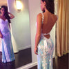Charming Sexy Mermaid Open Back Blue Lace Unique Affordable Long Prom Dresses, WG242