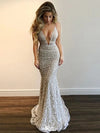 Sexy White V-Neck Mermaid Long Prom Dress Ideas, Evening Party Dresses,WGP1969