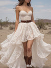 Unique High Low Lace Prom Dress Strapless Sweetheart A-Line Gown with