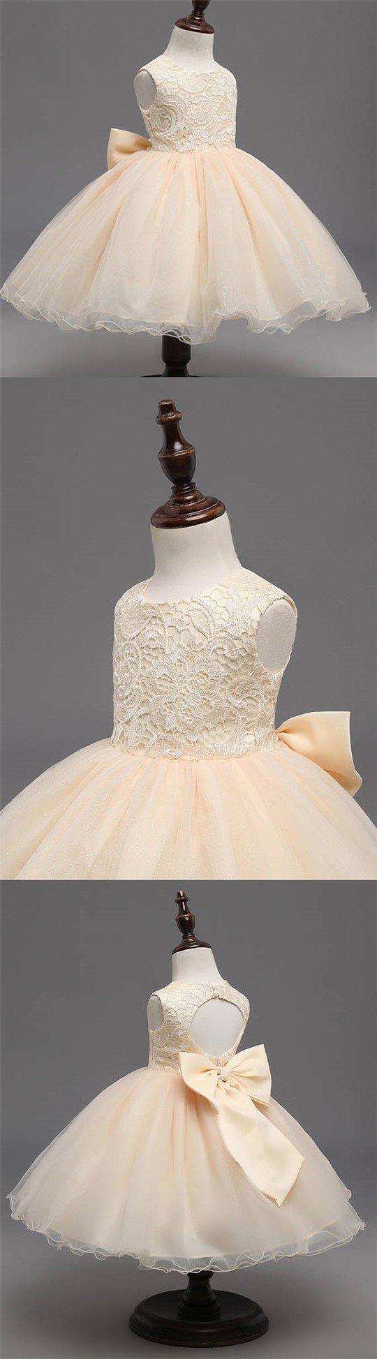 Beige Lace Top Sleeveless Flower Girl Dresses, Popular Tulle Flower Gi