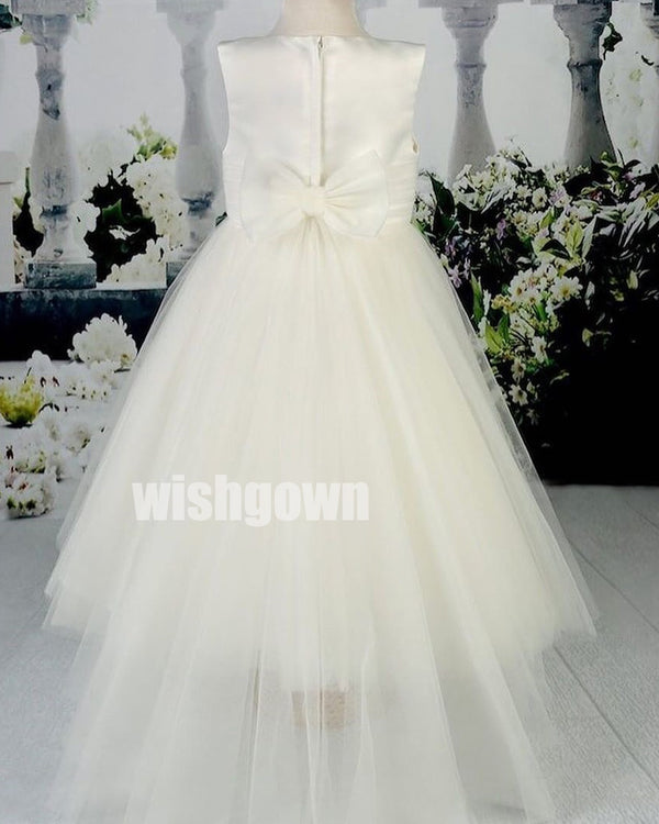 Elegant Pretty White Sleeveless Tulle Wedding Flower Girl Dresses, FGD011
