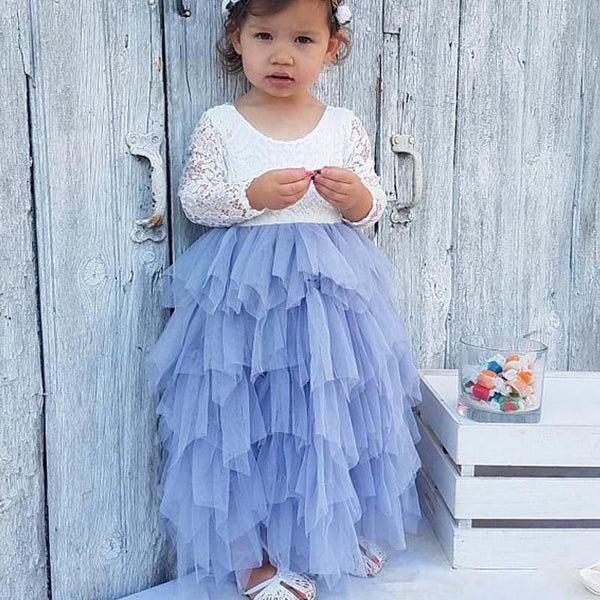 Scoop Long Sleeve Lace Top V-back Tulle Flower Girl Dresses, Popular Little Girl Dresses, FG070