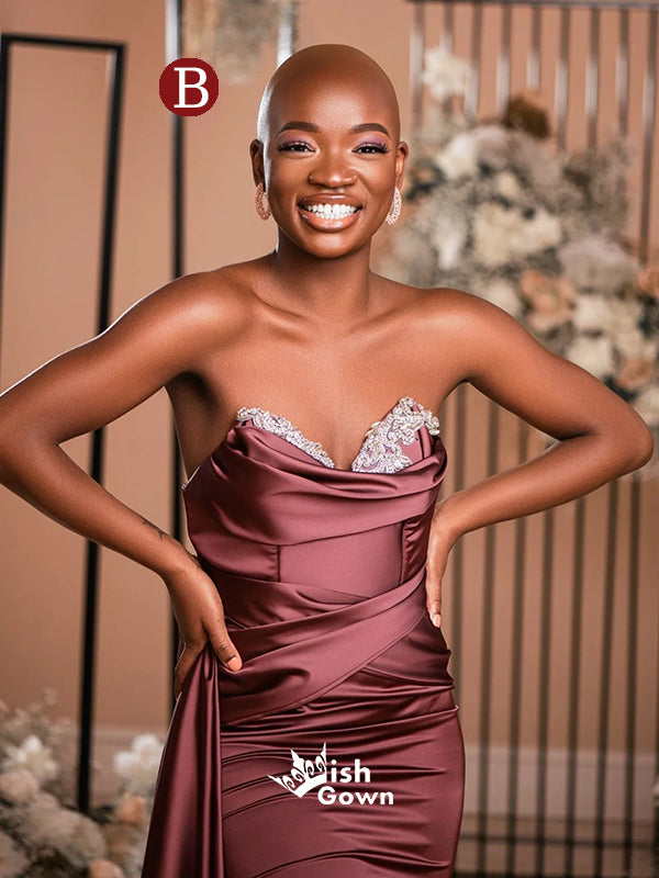 Mismatched Off Shoulder Pleats Squins Sweetheart Mermaid Soft Satin Lo