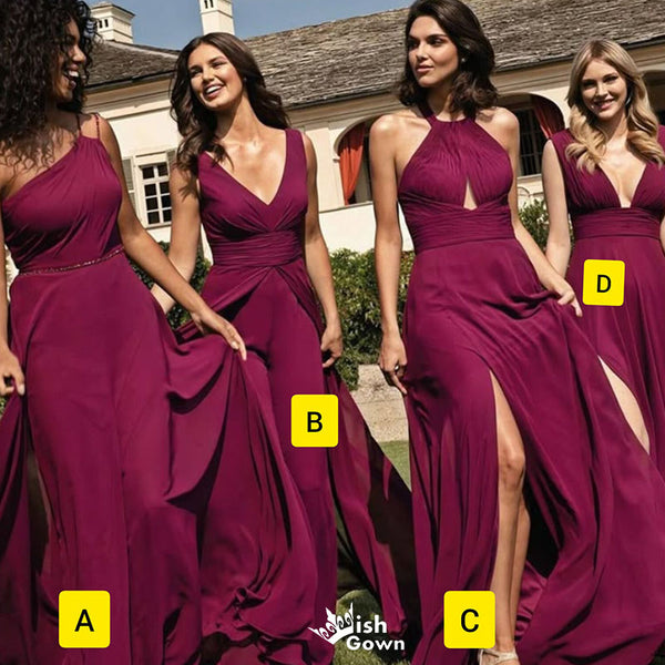 Unique Burgundy Mismatched Sleeveless Mermaid Long Bridesmaid Dresses Online,WGM470