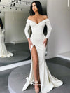 Off Shoulder Long Sleeves Buttons Slits Mermaid Evening Gowns Prom Dre