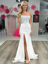 Elegant White Mermaid Straoless Side Slit Popular Long Evening Dresses, Formal Dresses, Birthday Party, WGP616