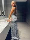 Sexy Gray Mermaid Spaghetti Strap Backless Long Sleeveless Long Party Prom Dresses,Evening Dress Online, WGP753