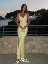 Elegant Yellow V Neck Spaghetti Straps Sheath Long Prom Dresses ,WGP10