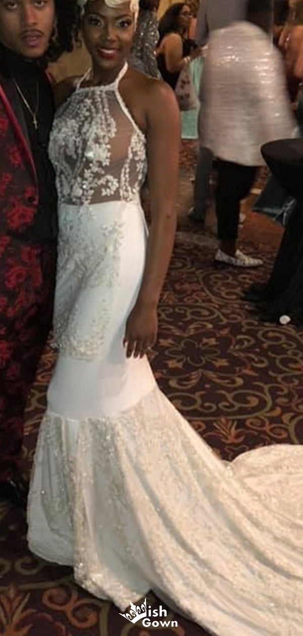 Gorgeous Halter Mermaid Long Prom Dress Ideas, Evening Party Dresses,W