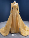Gorgeous Yellow High Neck Long Sleeves A-line Lace up Back Party Dress Long Prom Dresses to Impress, WGP952