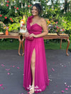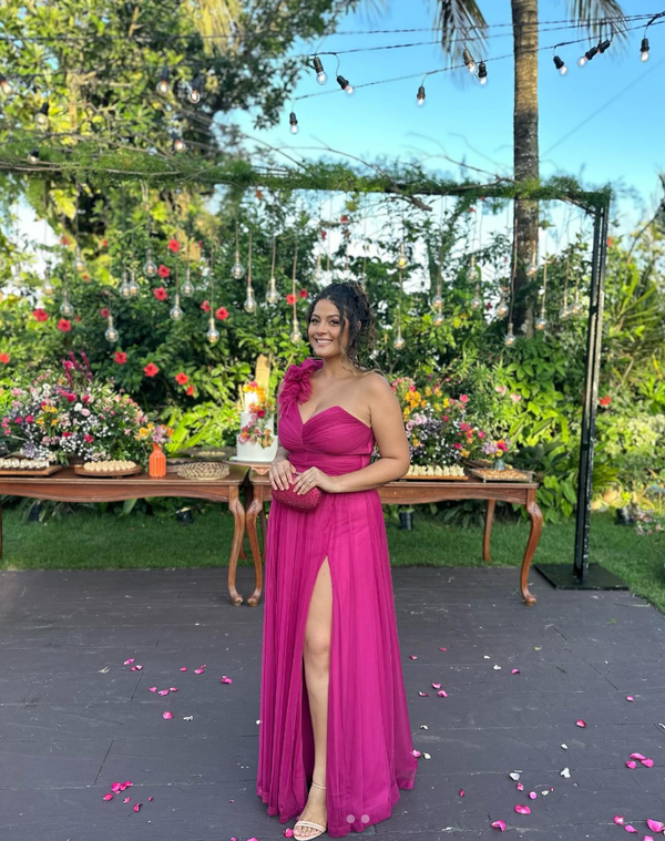 One Shoulder Lace up Back Side Slit A-line Long Party Dress Prom Dress
