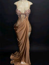 Sexy Glod Spaghetti Strap Mermaid Long Prom Dress Ideas, Evening Party Dresses,WGP1670