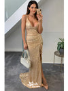 Sexy Gold Mermaid Side Slit Maxi Long Party Prom Dresses, Evening Dress,WGP274